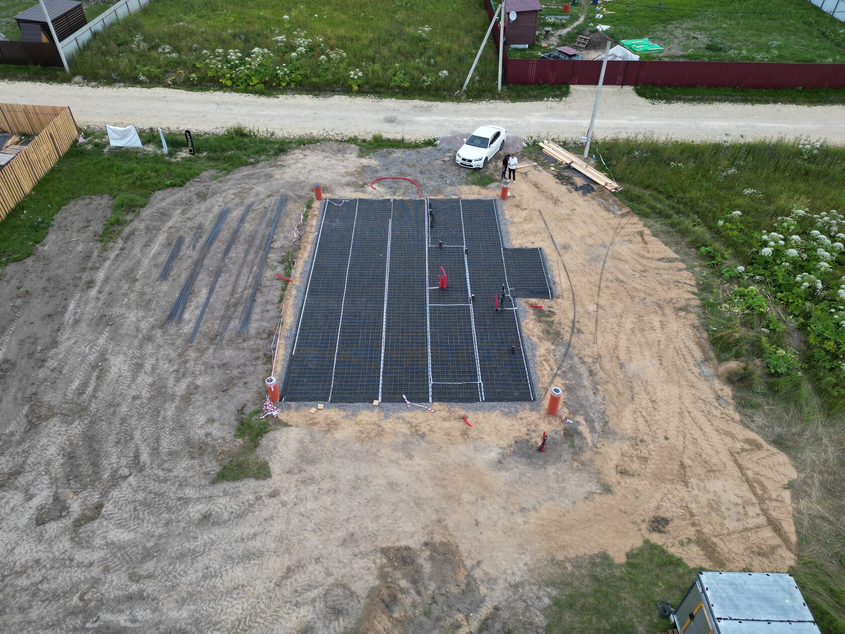 Подготовка песчаной подушки, прокладка коммуникаций;